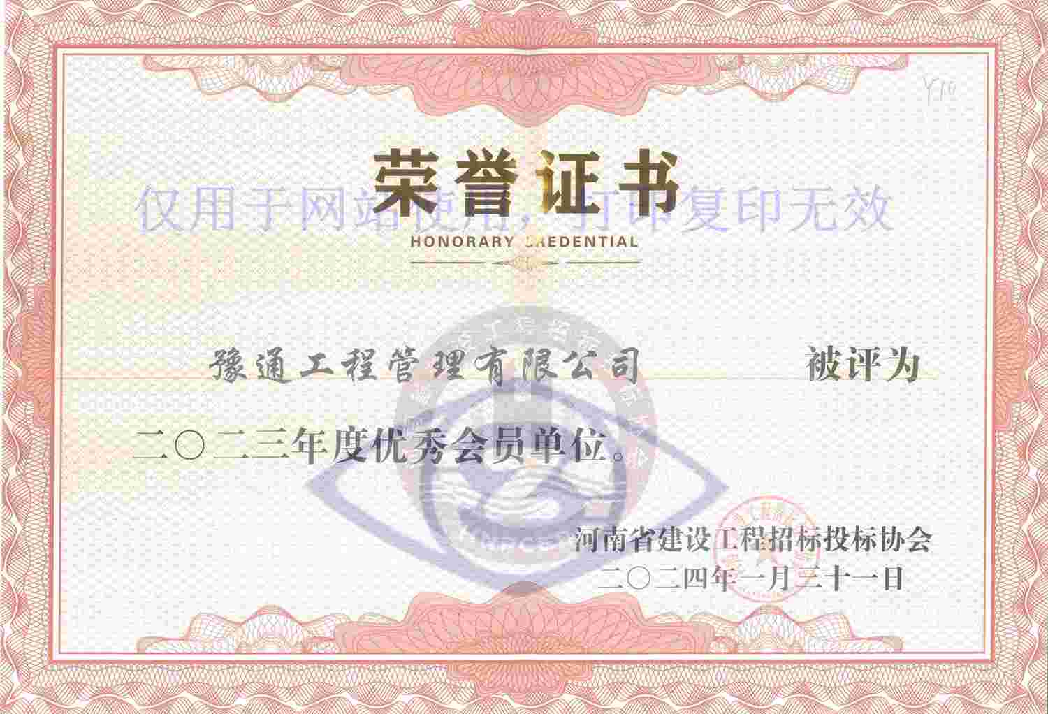 近日,河南省建設(shè)工程招標(biāo)投標(biāo)協(xié)會(huì)發(fā)布了《河南省建設(shè)工程招標(biāo)投標(biāo)協(xié)會(huì)關(guān)于2023年度優(yōu)秀會(huì)員單位評(píng)選結(jié)果的通知》(豫建招協(xié)字〔2024〕6號(hào)),豫通工程管理有限公司榮獲“2023年度優(yōu)秀會(huì)員單位”稱(chēng)號(hào)。