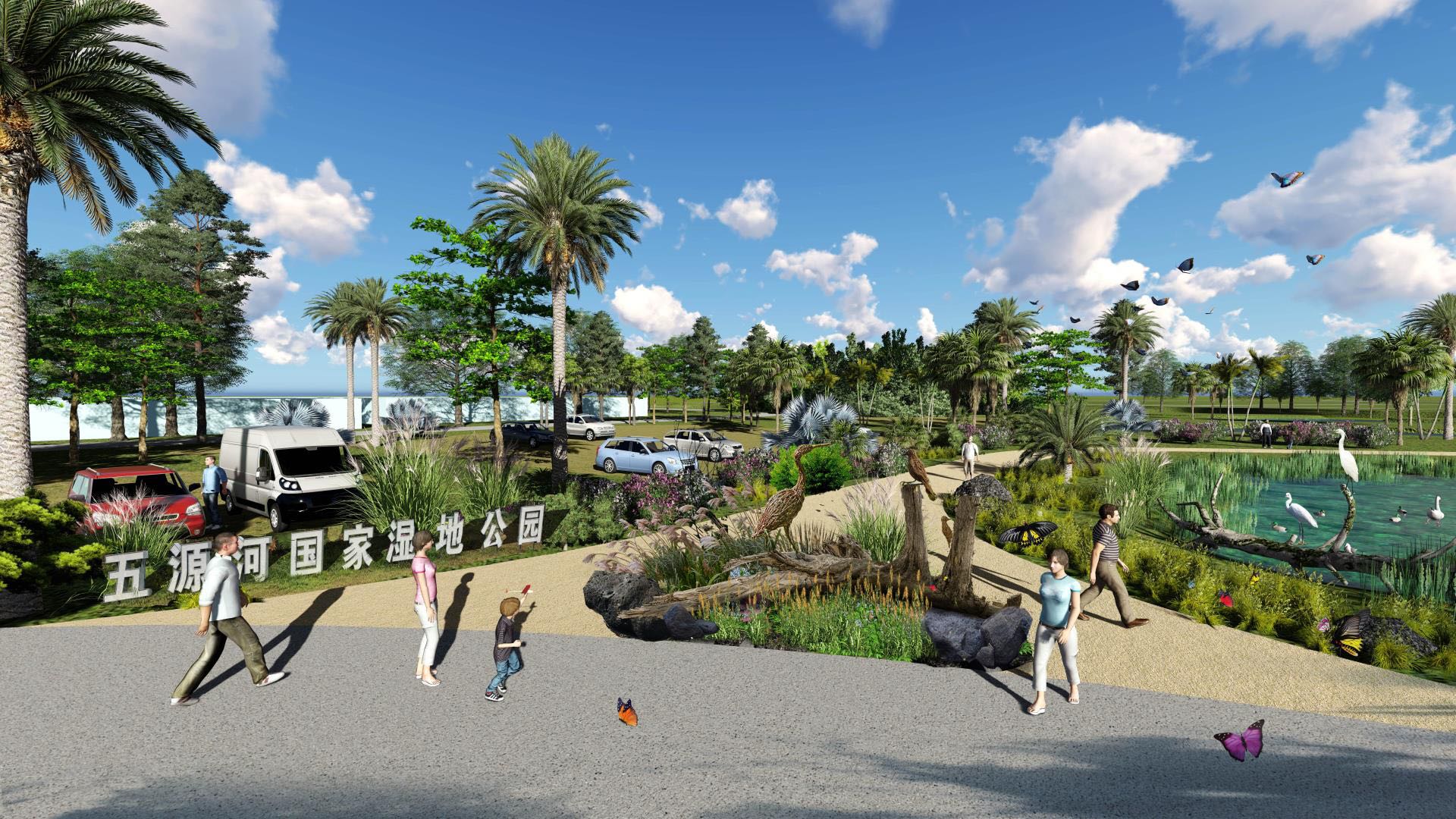 項目位于海南省??谑幸4蟮辣眰鹊纳嫌魏拥郎鷳B(tài)修復區(qū)以及椰海大道南側的濕地公園展示區(qū)和河源保育區(qū)。