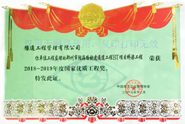公司監(jiān)理項(xiàng)目工程質(zhì)量合格率100%,其中獲魯班獎(jiǎng)、國(guó)家優(yōu)質(zhì)工程獎(jiǎng)、中國(guó)市政金杯示范工程獎(jiǎng)、中國(guó)安裝工程優(yōu)質(zhì)獎(jiǎng)(中國(guó)安裝之星)15項(xiàng),省級(jí)建設(shè)工程獎(jiǎng)(中州杯、優(yōu)質(zhì)工程、市政金杯獎(jiǎng)及結(jié)構(gòu)類(lèi))等80余項(xiàng),市級(jí)優(yōu)良工程150余項(xiàng),并且連續(xù)多年被評(píng)為國(guó)家、省、市建設(shè)工程先進(jìn)監(jiān)理企業(yè)等榮譽(yù)稱(chēng)號(hào)。二十多年的專(zhuān)業(yè)服務(wù)和經(jīng)驗(yàn)積累,豫通管理現(xiàn)已成長(zhǎng)為實(shí)力雄厚、管理領(lǐng)先的工程咨詢(xún)服務(wù)企業(yè)。
